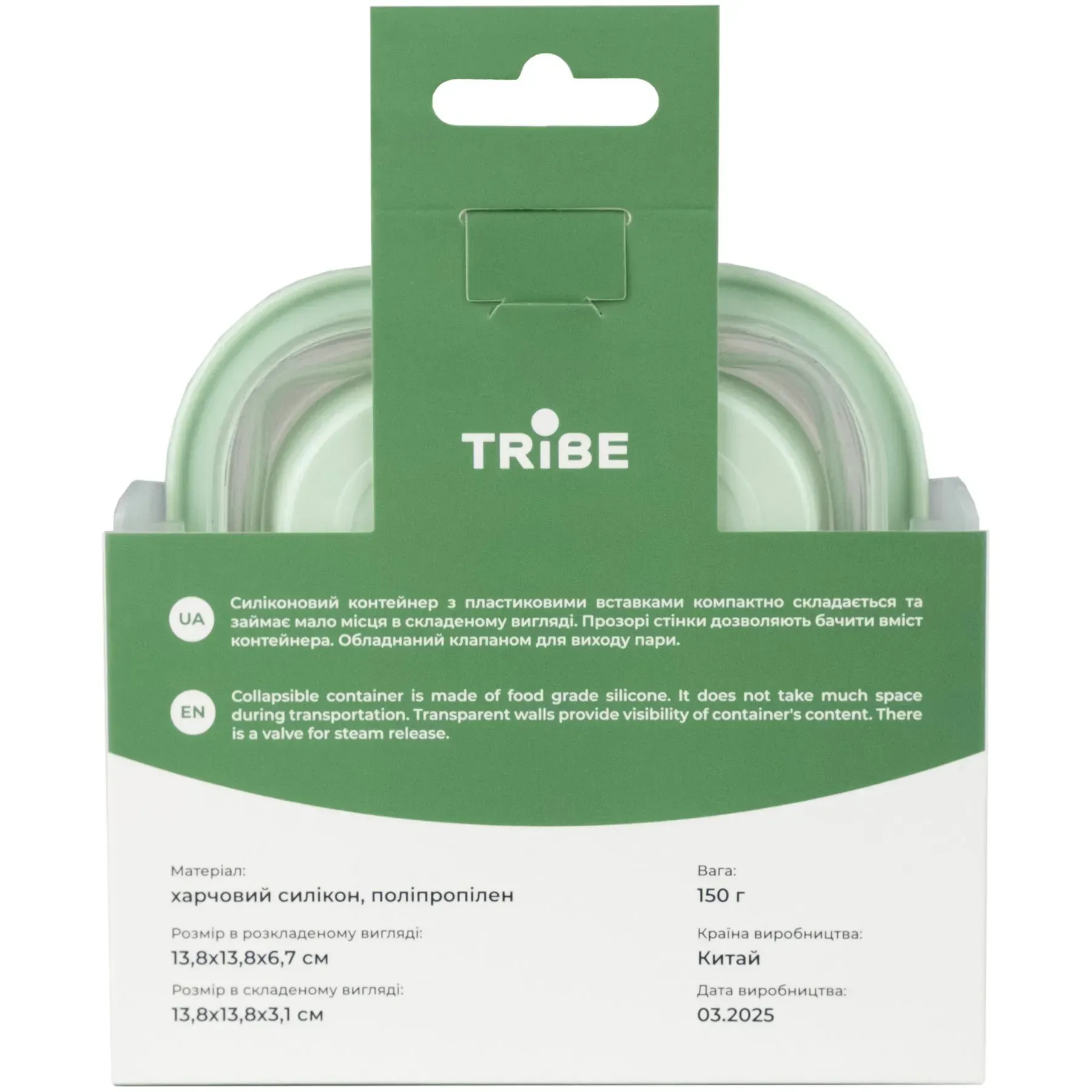 Tribe Collapsible Container 500 мл это складной пищевой контейнер квадратной формы, изготовленный из безопасного для пищи силикона с жесткими пластиковыми вставками. В разложенном состоянии обеспечивает удобный объем для перекусов, соусов или гарниров, а после использования доли секунды складывается до плоского профиля, экономя место в рюкзаке или шкафу. Прозрачные стенки позволяют видеть содержимое без открывания, а крышка с клапаном выпуска пара предотвращает конденсат при переноске только что подогретой пищи. Конструкция продумана для ежедневного ритма: контейнер совместим с горячими и холодными блюдами, подходит для разогрева и мытья в посудомоечной машине, легко очищается и служит долго.