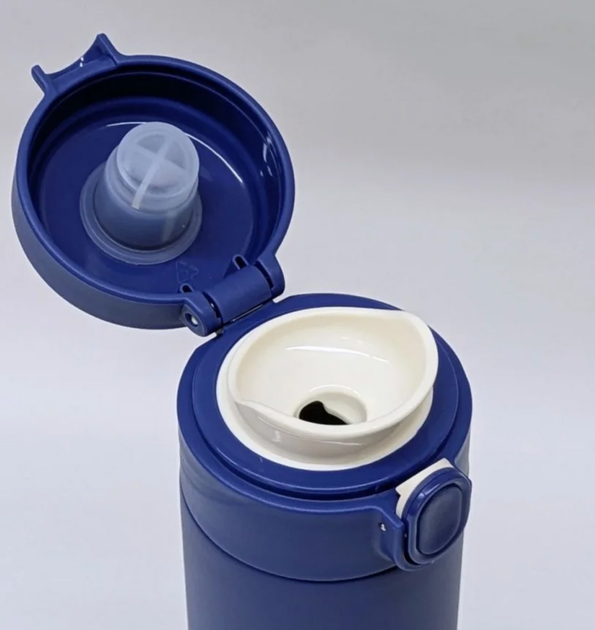 - Пить удобно: наличие пластикового ободка-поилки позволяет пить прямо из термоса, защищая губы от контакта с горячим металлом.