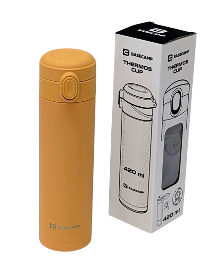 Стильная и функциональная термокружка BaseCamp станет надежным спутником в городе, офисе или путешествии. Благодаря объему 420 мл и малому весу всего 280 г, он удобно помещается в рюкзак, сумку или автомобильный держатель. Изготовленный из высококачественной пищевой нержавеющей стали и безопасного BPA-free пластика, кружка превосходно сохраняет температуру напитка: до 12 часов горячим (90°C→ 60°C) и до 72 часов холодным. Крышка с кнопкой-фиксатором надежно защищает от проливки, а удобный ободок-поилка позволяет комфортно пить без контакта губ с металлом.