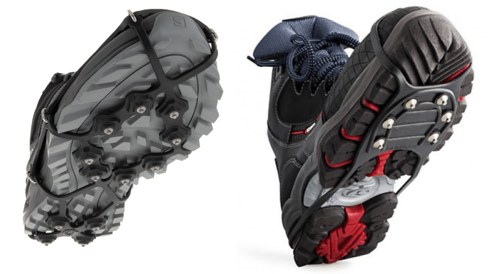 На додаток до питання про металеві помічники на підошві. Якщо ви впевнені, що вони вам потрібні, то сміливо беріть кросівки з вбудованими шипами. Якщо є сумніви — пошукайте модель зі штифтами, які можна самостійно вкрутити/викрутити. Або ще один лайфхак — шиповані гумові накладки на взуття (так звані льодоступи, льодоходи). Ми рекомендуємо купити їх і завжди носити з собою про запас — легкі, компактні та прості у використанні. До речі, такий аксесуар не завадить і для повсякденного користування у місті в періоди ожеледиці.