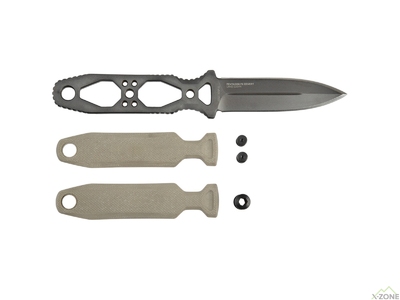 SOG Pentagon FX Covert - ніж з фіксованим двогострим лезом і міцним чохлом. Його особливість - знімні накладки рукояті, без яких ніж стає легшим і займає менше місця.