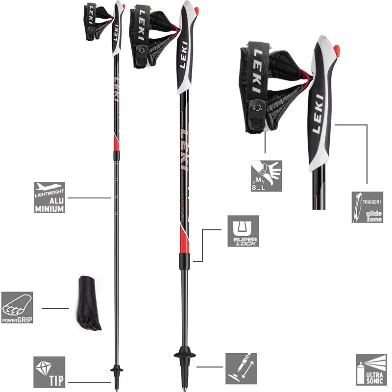 - Super Lock System — внутрішня система фіксації з навантаженням до 140 кг для надійного регулювання довжини палиць
